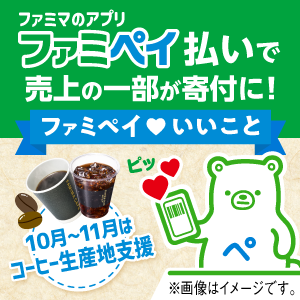 期間中、ファミペイ払いで対象商品いずれか1点を購入いただくと、特典の利用期間で対象商品いずれか1点に使える無料クーポンがもらえます。
