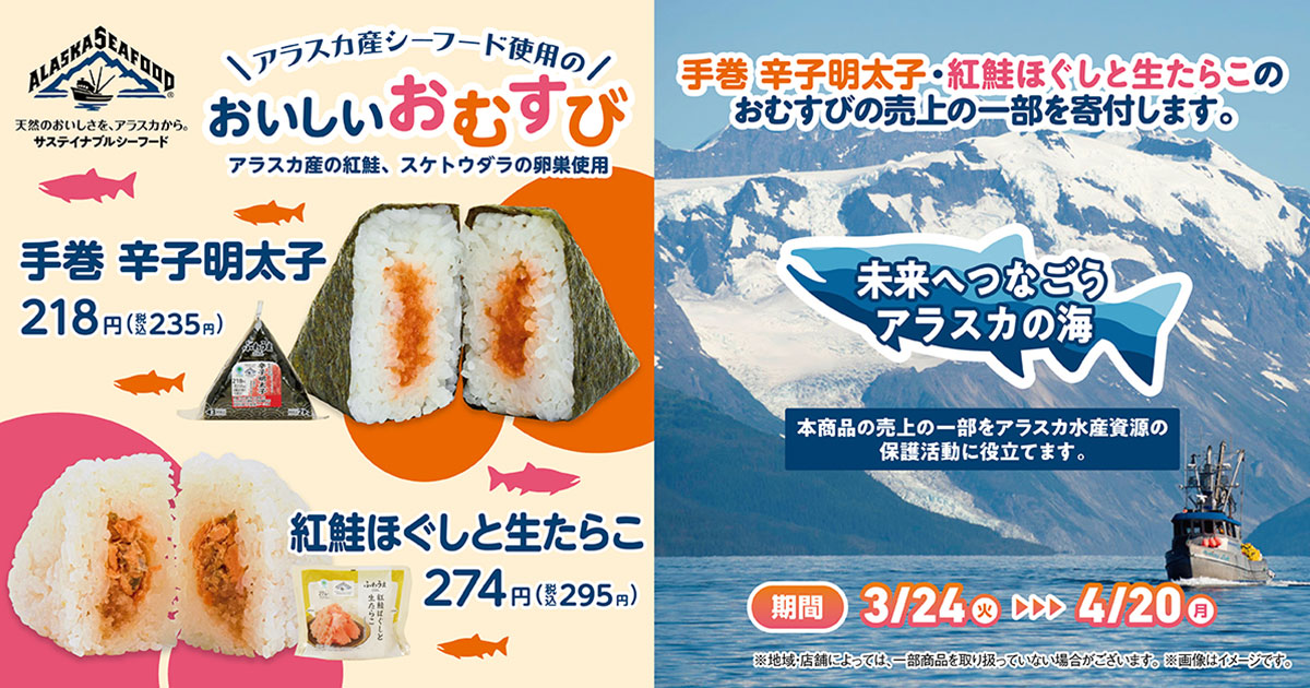 持続可能な漁業を実現するアラスカ産シーフード使用のおむすびを発売!売上の一部を持続可能な漁業支援に寄付する取り組みを開始~45周年も食べて応援!未来へつなごうアラスカの海~