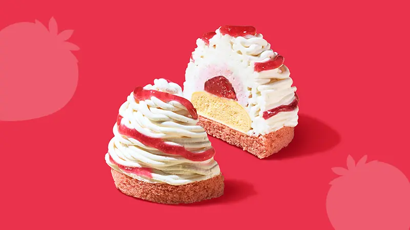 ホワイトチョコ入りのクリームに甘酸っぱいいちごのハーモニーが楽しめるモンブランです。さっくりとしたメレンゲの食感もポイントです。