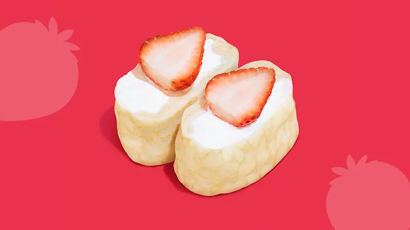 もちっと食感のクレープ生地にふわふわのミルクムースを入れて、いちごをトッピングしました。