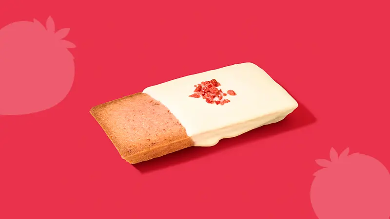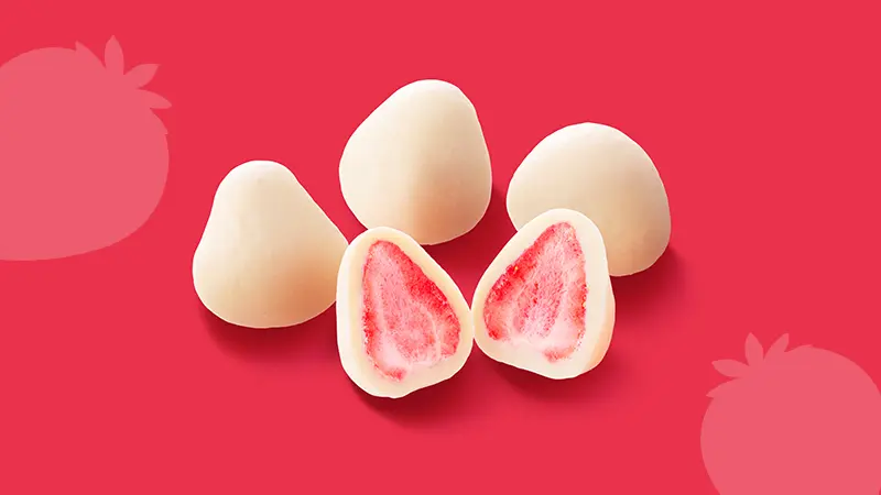 フリーズドライいちごの酸味と、ホワイトチョコレートのコクが楽しめるストロベリーチョコです。