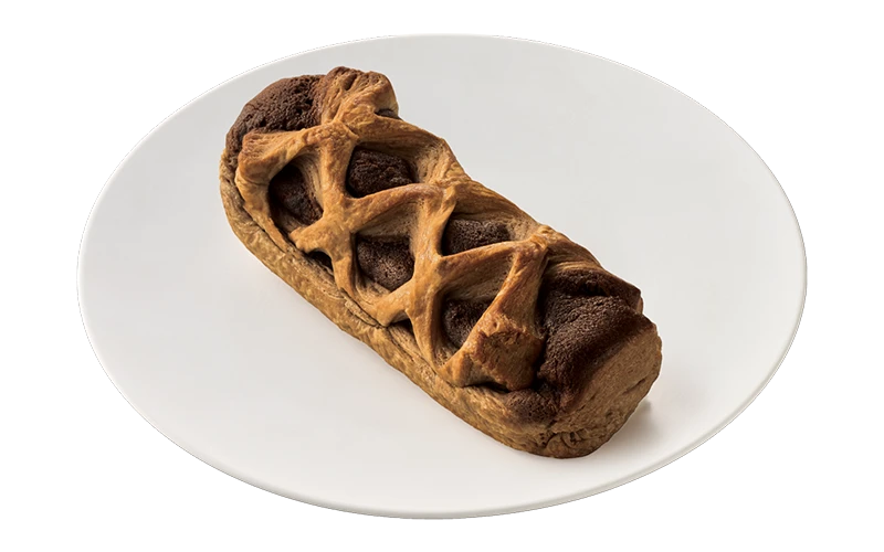 ラズベリー風味のココア入りケーキ生地と甘酸っぱいラズベリージャムを絞り焼き上げたショコラ風味のデニッシュに、コクのあるチョコクリームをサンドしました。