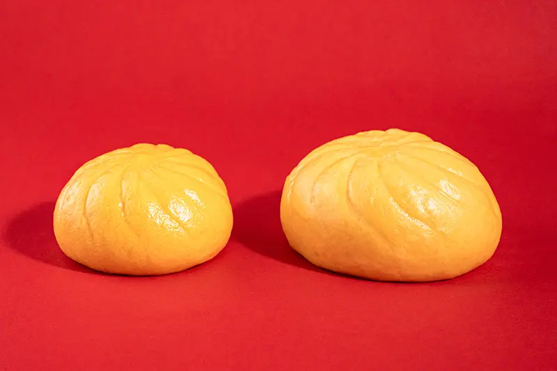旨み・甘味のあるトマトのソースとのびるチーズのバランスが特長のピザまんを“なぜか45%”増量しました。トマトのソースには、チーズの濃厚さに合うよう、甘さが特長のトマトを使用しています。