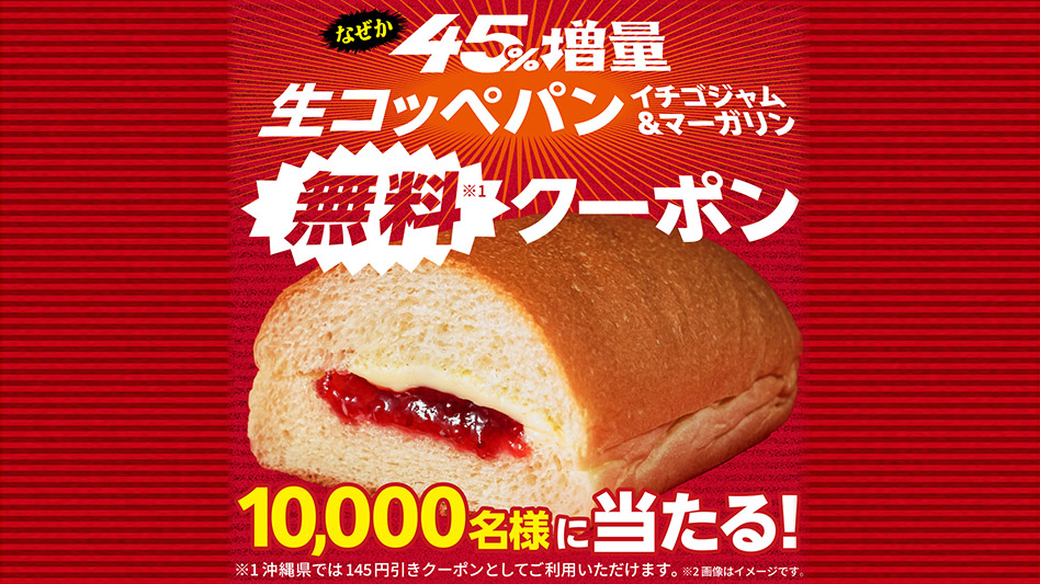 ※沖縄県では生コッペパン(イチゴジャム&マーガリン)の145円引きクーポンとしてご利用いただけます。