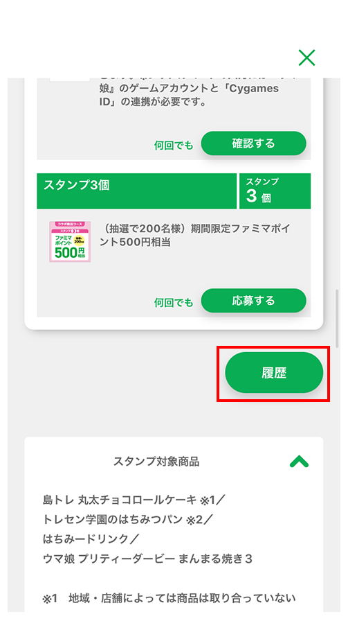 ※スタンプ3個「ファミマポイント500円相当」の応募毎にファミマポイント1円相当を進呈いたします。