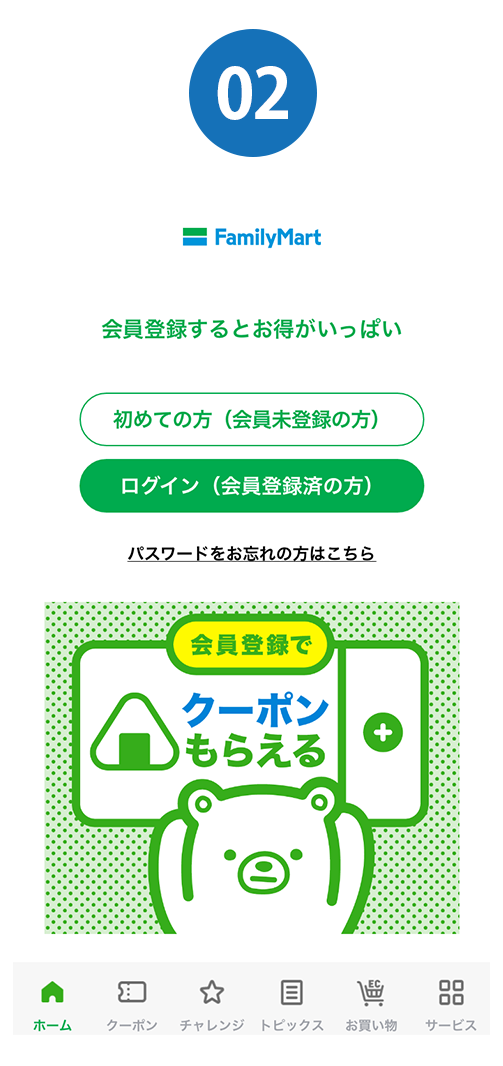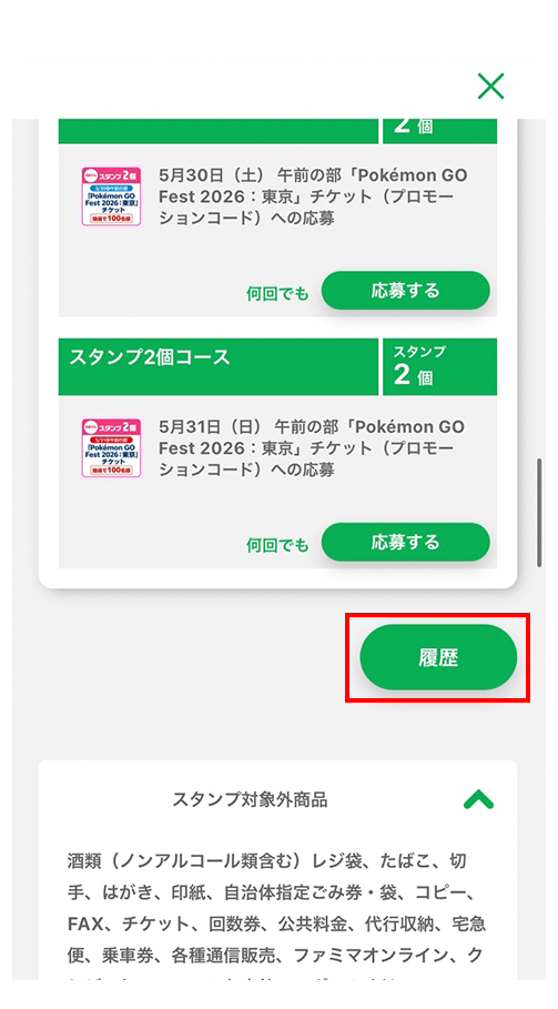 スタンプはファミリーマート店舗でのお支払いでのみたまります。