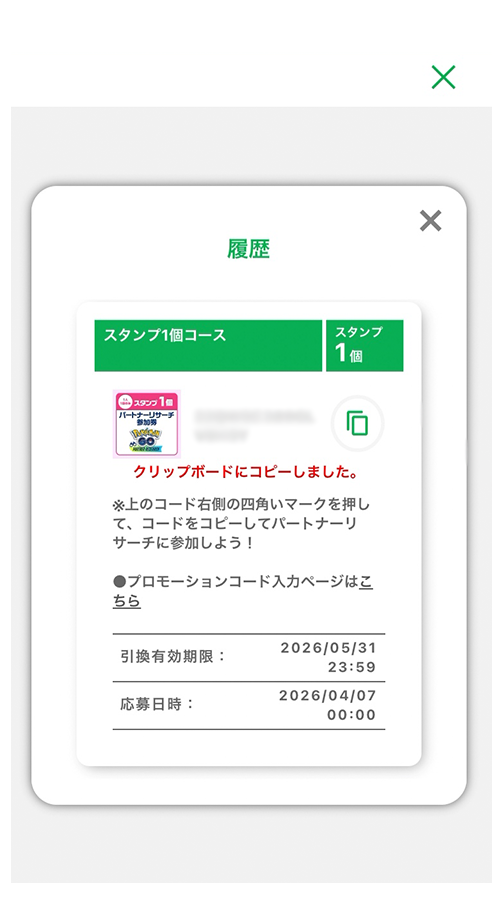 「履歴」からもプロモーションコードを確認できます