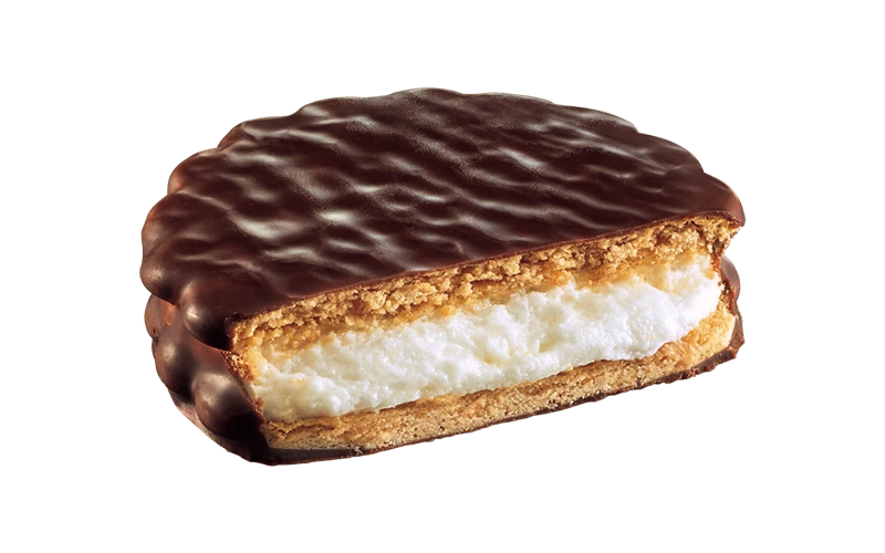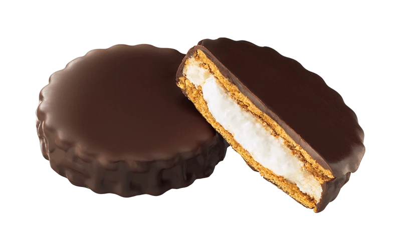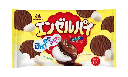 チョコレート、マシュマロ、ビスケットが1度に楽しめる大満足のエンゼルパイ!マシュマロのふわふわっとした食感ともっちり感を心ゆくまで味わえます。数量限定