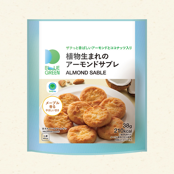 生地に豆乳を使用しています。アーモンドとココナッツの香ばしさと食感がアクセントのサブレです。メープル香るやさしい甘さに仕上げました。