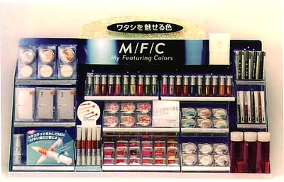 『M/F/C(エム・エフ・シー)』は、マーケットトレンドや競合ブランド分析はもちろん既存取扱商品POSデータよりお客様のニーズや嗜好を調査し開発しました。プチリアル (小さいけれど本物)を商品コンセプトに、流行の色、話題の色、使ってみたい質感・機能を追求し、女性のトータルメイクを実現するアイテム13品目、56品種をラインアップ。まさに「色の洪水」ともいえる見て楽しい色揃え、遊び心をくすぐるバリエーションです。品質・価格については、一品一品にこだわり、上質でありながら同時に気軽に買える設定としました。また、ペンシルタイプで唇に塗ると2色の色が混ざるデュアルグロスなど化粧品業界初の商品も取りそろえ、差別化商品として開発しております。