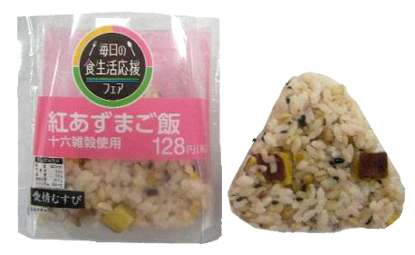 【内容】昆布だしで炊いた十六雑穀入りのご飯に、サイコロ状にカットし、甘く煮た“紅あずま”を混ぜ込みました。(目安194kcal)