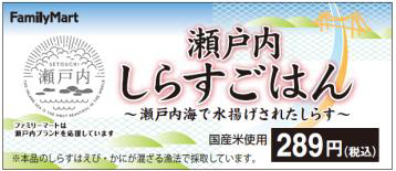 株式会社ファミリーマート(本社:東京都豊島区/代表取締役社長:中山勇)は、瀬戸内ブランド推進連合(事務局所在地:広島市中区/会長:広島県知事 湯崎英彦)とともに、瀬戸内産食材を使用した「瀬戸内しらすごはん」(税込価格:289円)を、2014年3月21日(金)から全国のファミリーマート店舗約8,000店で発売いたします。