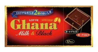 【内容】口どけなめらかなガーナミルクチョコレートとガーナブラックチョコレートが重なり合った2層のチョコレートです。
