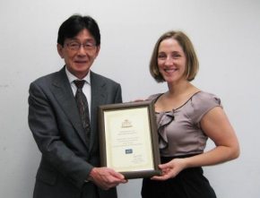 本年12月15日(火)には、ファミリーマート本社にて、米国大使館 農産物貿易事務所のレイチェル・ネルソン所長から“くるみパン・オブ・ザ・イヤー”の殿堂入りの表彰状等を進呈いただく、授与式が行われました。