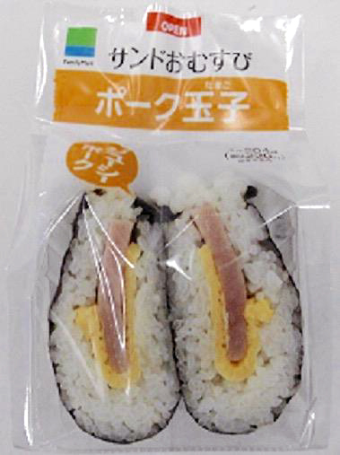 【内容】おむすびに合うよう濃いめに味付けにしたジューシーなポークソーセージと、玉子焼、シーチキンマヨネーズをサンドしました。