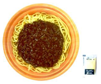 約13時間かけてじっくりと煮込んだデミグラスソースと、香ばしく炒めた肉と香味野菜を使用したミートソースです。別添でパルメザンチーズを付けました。