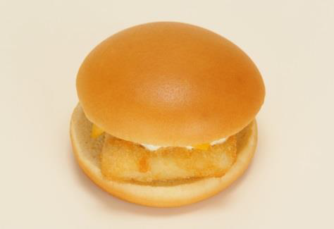 【内容】しっとりとした食感に改良したバンズで、旨みがUPしたスライスチーズ、白身魚のフライ、タルタルソース等をサンドしました。