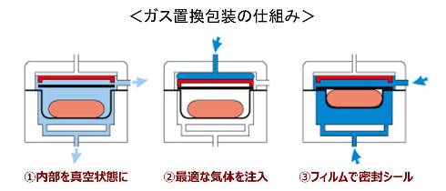 このたびは、さらに取り組みを進め、容器内の空気をサラダに適したガスに置き換え密封(ガス置換包装)することで、従来より消費期限を1日延長させることを実現いたしました。