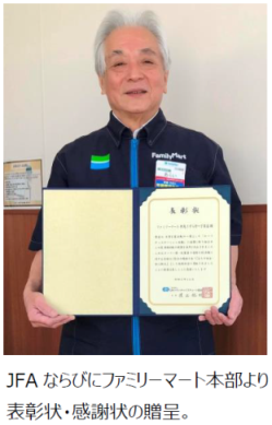 このたび、2020年12月度におけるSS活動の好事例としてJFAが78店を表彰した中、ファミリーマート店舗26店が表彰されましたので、お知らせいたします。なお、2020年は、全国47都道府県全ての地域から合計279店(前年差+127店舗)がJFAから表彰を受けました。