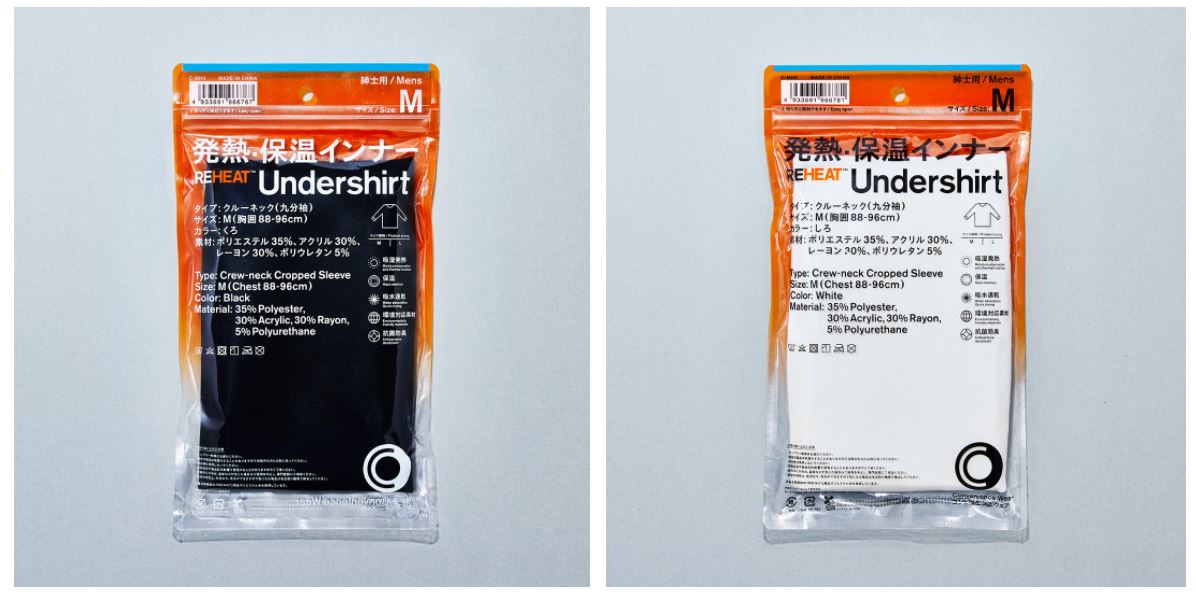 コンビニエンスウェアの新ラインとして、発熱インナー「REHEAT(リヒート)」を秋冬限定で発売いたします。「REHEAT(リヒート)」は新開発素材を使用した、肌の湿度を吸って発熱し、しっかり保温する、機能性インナーです。