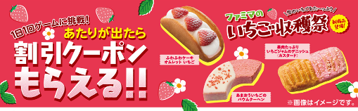 開催期間中、1日1回ファミマのアプリ内でゲームに挑戦でき、当選するといちご収穫祭対象商品に使えるクーポンが獲得できます。