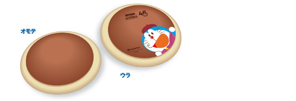 【内容】ドラえもんの大好物、どら焼きをチョコ味にアレンジしました。しっとりなめらかなチョコあんが入ったどら焼きです。
