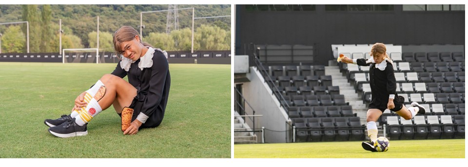 TikTokに投稿いただいた動画では『喜び方が田中パウロ淳一みたいな彼女』と題し、田中選手が人気キャラクター“パウちゃん”に扮して登場。ファミチキモチーフの「すね当て&ソックス」を着用しながら華麗なトラップと豪快なシュートを決め、「ゴール決めてあげあげ~!」とユニークなゴールパフォーマンスを披露する姿にぜひご注目ください。