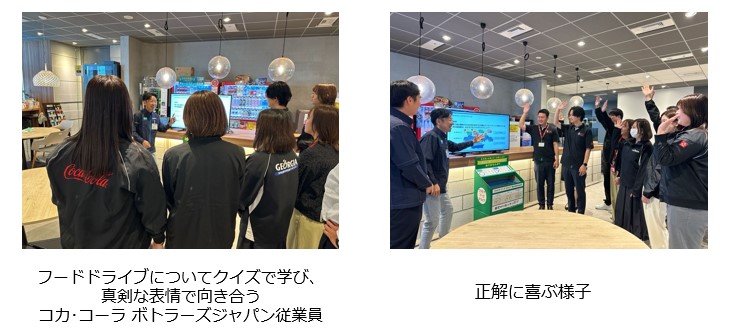 実施に先駆けて、コカ・コーラ ボトラーズジャパンの従業員に楽しく食品寄付に参加いただくため、ファミリーマートのスタッフが取り組みの意義を伝えるクイズを実施しました。参加者からは「家庭の食品が誰かの笑顔につながることに感動した」「食品ロス問題をより身近に感じた」などの声が寄せられ、食支援への理解と共感が深まる機会となりました
