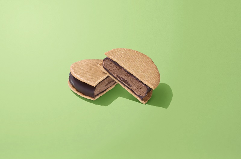 【内 容】中心にほんのりビターな味わいのチョコソースが入ったチョコクリームをパリっと食感のチョココーティングで覆い、サクっと食感のビスケット生地でサンドしました。