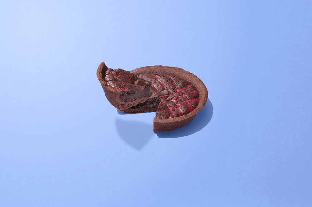 【内容】チョコタルトに、ラズベリー香るチョコ生地とキューブチョコを加え、甘酸っぱいラズベリーソースをかけて焼き上げたタルトです。チョコの濃厚さとラズベリーの甘酸っぱい爽やかさが加わった、見た目も味わいも楽しい一品です。