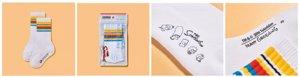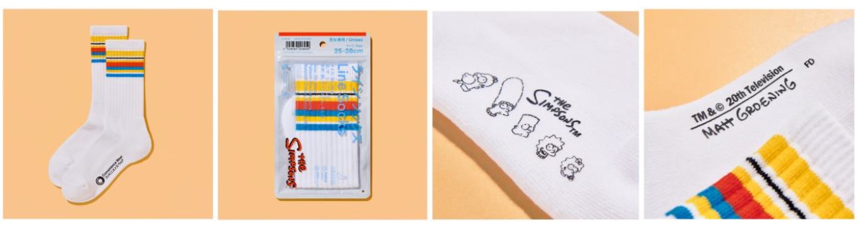 このたび、1989年に放送がスタートした米国テレビ史上最長寿アニメーションシリーズ「ザ・シンプソンズ」のオリジナルアイテムを発売いたします。黄色をベースにシンプソン家をイメージした色合いのラインソックスは、作品同様に親子でお揃いを楽しめるよう、こどもサイズもご用意しました。また、スウェットやタオルインポーチなど「ザ・シンプソンズ」ファン必見のアイテムを揃えました。