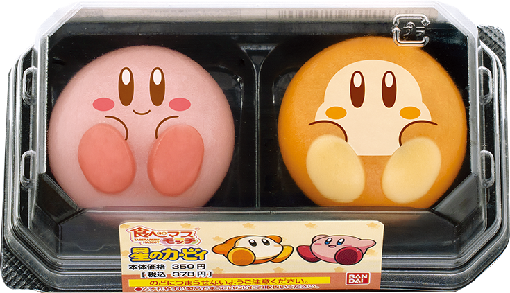【内容】カービィ(カスタード味餡)とワドルディ(キャラメル味餡)の食べマスモッチです。カービィとワドルディの表情はそれぞれ4種類。16通りの組み合わせが楽しめます。