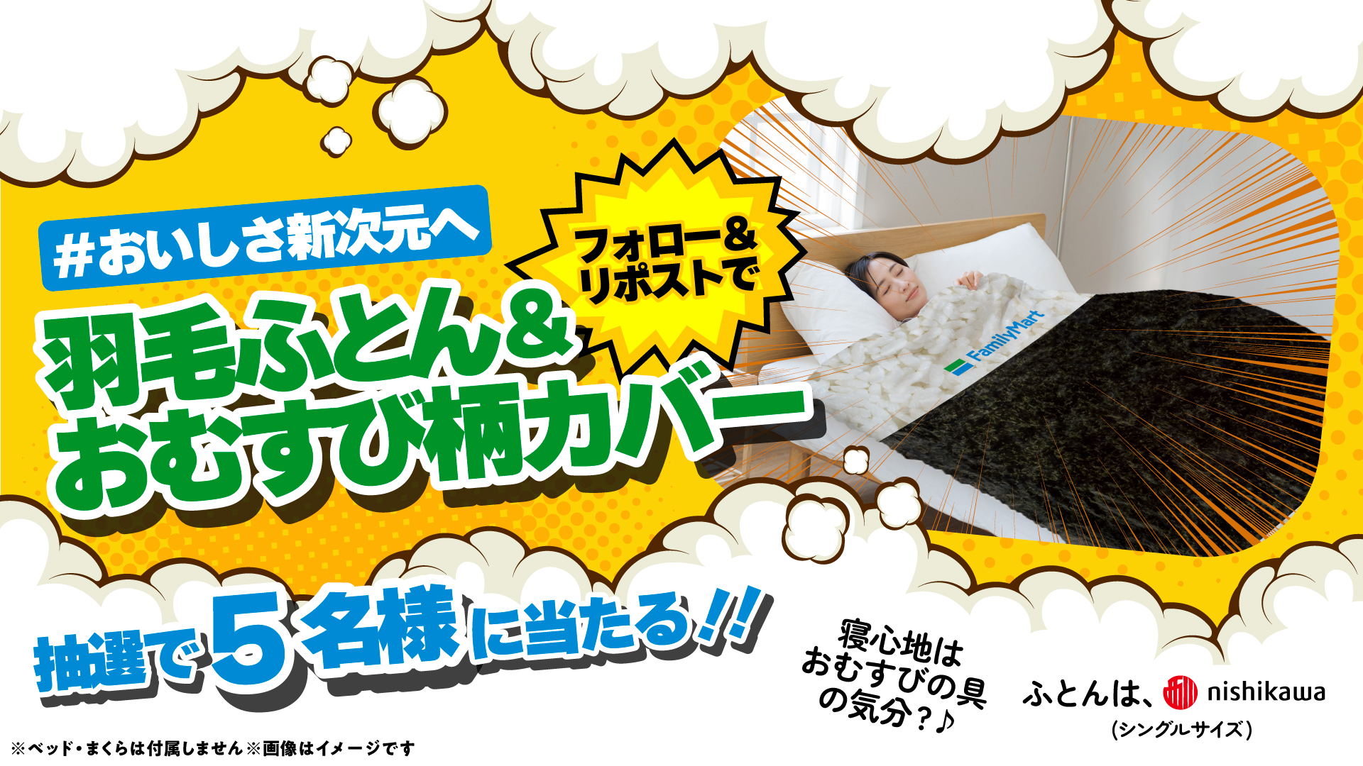 「#おいしさ新次元へ 羽毛ふとん&おむすび柄カバーが当たるキャンペーン」