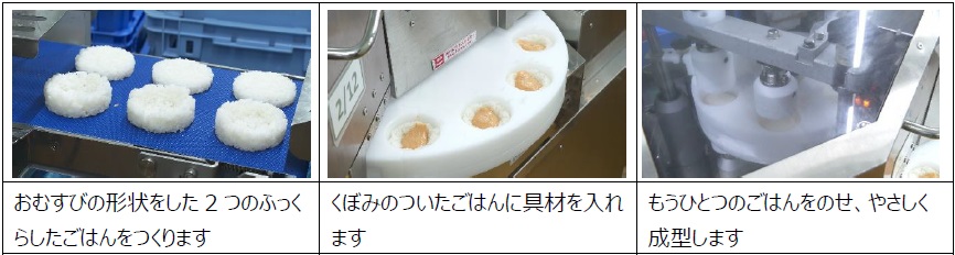 ファミリーマートは2023年に「ぼんご」のおむすびを参考にした「ふわうま製法」の手巻おむすび成型機を導入。お米とお米の間に空気を抱き、やさしく成型することでふっくらとした食感を実現しています。また成型の段階から具材をいれるくぼみをつくり、これまでより安定して具材がおむすびの中で拡がります。