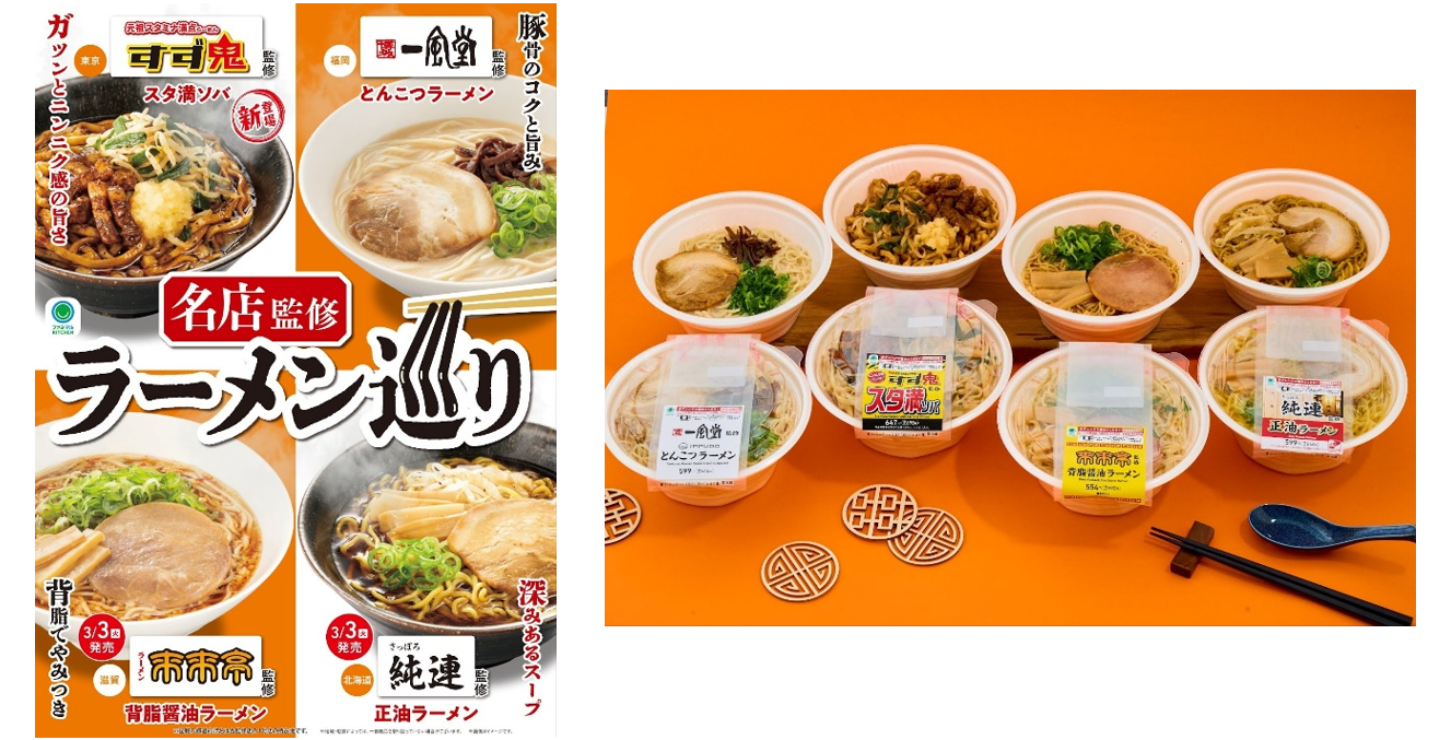前回発売時に5週連続で温かい麺カテゴリで売り上げ数1位を獲得した「博多一風堂」、カップ麺や冷凍食品でご支持をいただいている「すず鬼」、ファミリーマートではおなじみの「来来亭」、「さっぽろ純連」、それぞれの監修のもとで、レンジで温めても美味しい麺やスープを目指し、何度も試作を重ねて出来上がった自信作揃いです。店舗にお越しいただくのが難しい方も、お近くのファミリーマートで気軽に有名店の味をお楽しみいただけます。