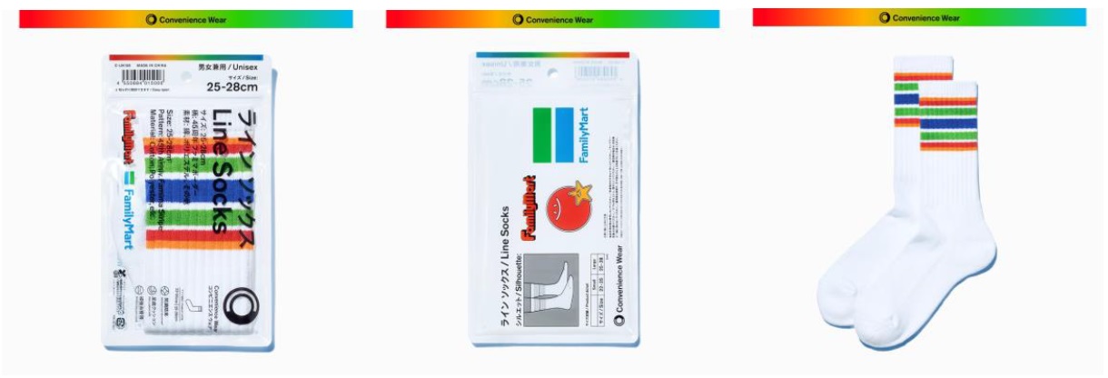 【内容】男女兼用のラインソックスです。ファミリーマート45周年記念カラーとして、1980年代までファミリーマートのシンボルマークとして使用されていた「太陽と星」とファミリーマートカラーを配色しました。足底はパイル編みの肉厚仕様です。抗菌防臭加工でニオイにくい仕様です。