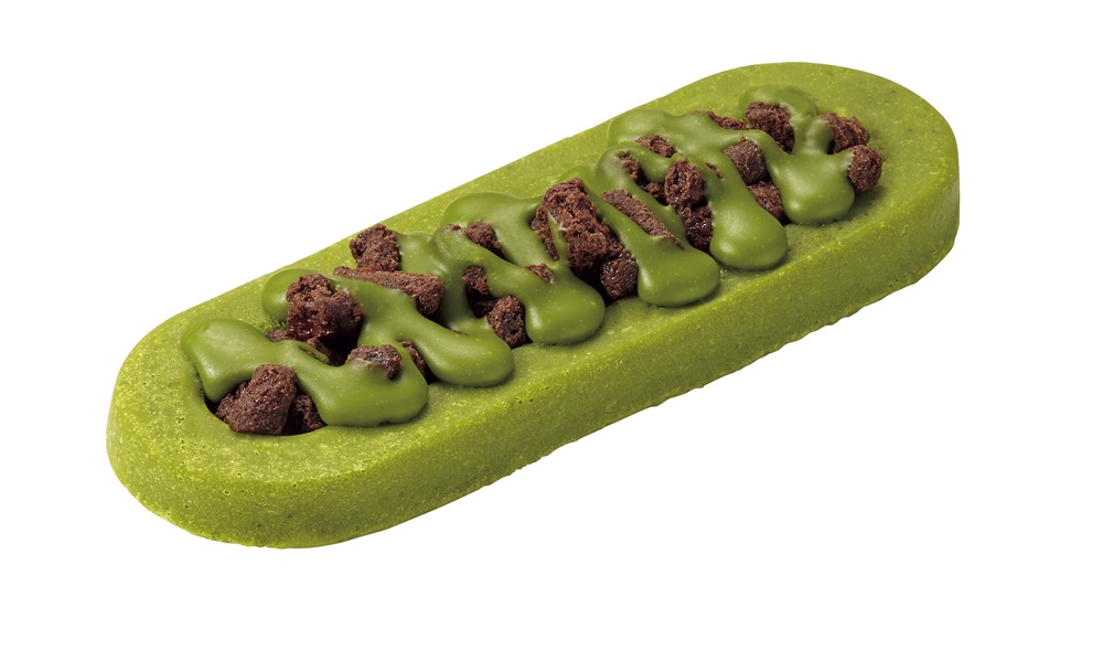 【内容】京都限定ブラックサンダーの抹茶味をイメージしたガトーショコラです。ガトーショコラ生地にココアクランブルをトッピングし、抹茶チョコソースをかけました。ブラックサンダーならではのザクザク食感と、抹茶の味わいが特長です。
