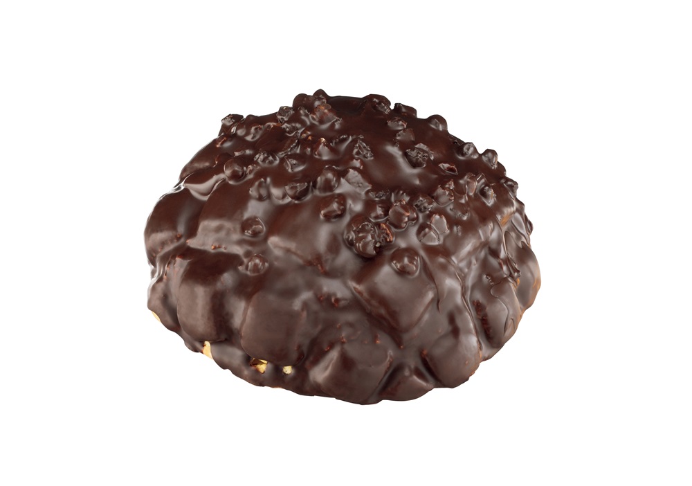 【内容】メロンパンにチョコクリームを絞り 、バタービスケットとココアビスケットを乗せ、さらにコーティングチョコをかけることで、ブラックサンダーの味わいとザクザク食感を表現しました。