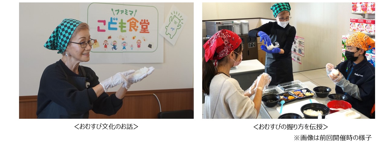 「ファミマこども食堂」は、店舗のイートインスペースを活用し、地域のこどもたちやそのご家族の皆さまを対象に、参加者同士が一緒に楽しく食事をしたり、コミュニケーションを図ることで、地域交流の活性化を応援する取り組みです。こうした活動の一環として、「親子おむすび教室」は、ファミリーマートの地域社会への貢献の想いと、「ぼんご」店主の右近氏の次世代へおむすび文化を継承したいという想いが合致し、2024年から開催しています。これまでの開催では「親子で楽しく参加させていただきました。また企画がありましたら参加させてください。」「直接女将さんに教えてもらえると思わず、おいしくて嬉しかったです!」など、ご好評の声を多数いただいたことから、2026年は実施規模を拡大し、全国5か所の地域へ「ぼんご」直伝の技と、おむすびを通じた温かい心の交流を届けてまいります。
