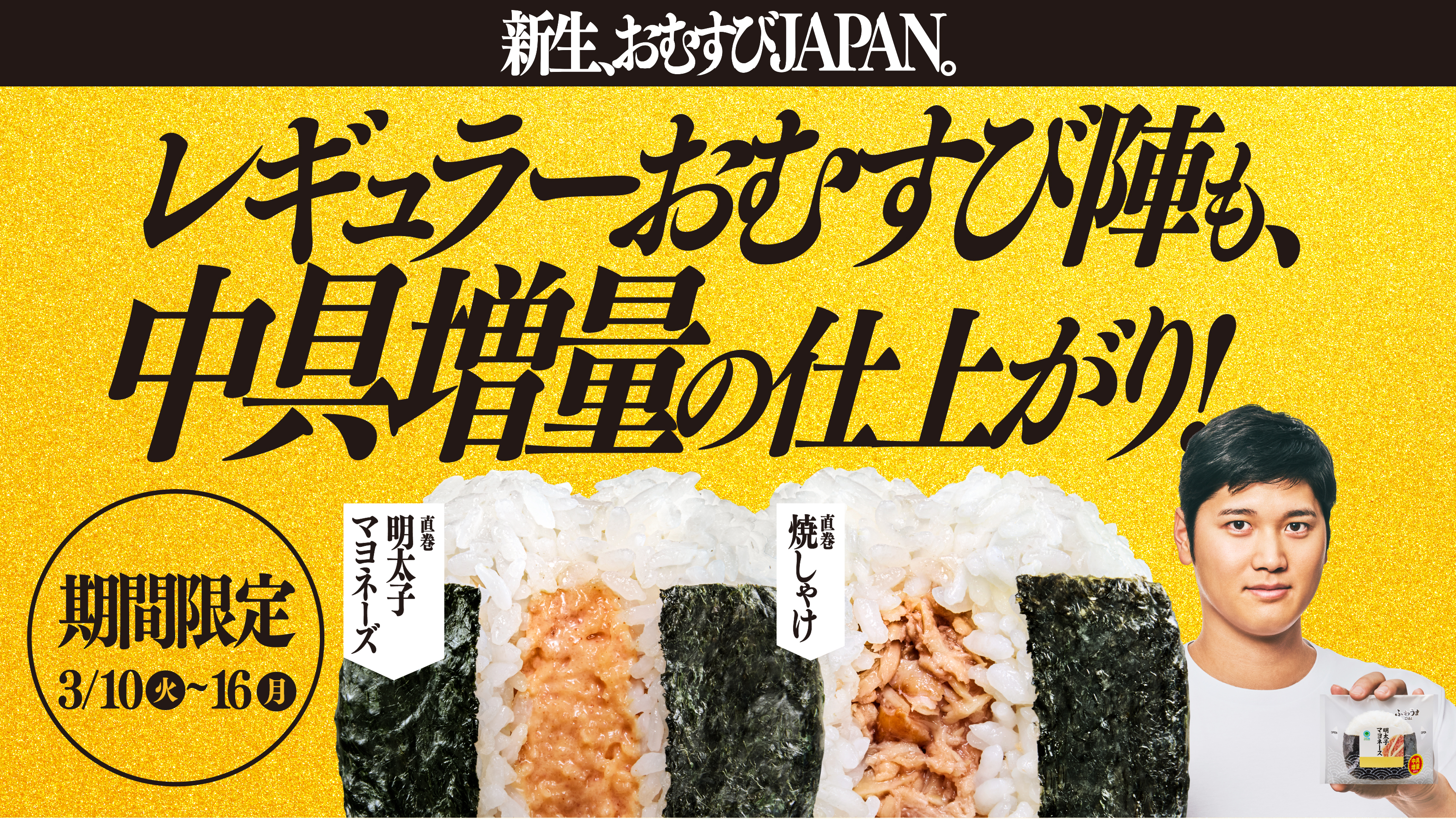 今シーズンも圧倒的なパフォーマンスで世界を魅了するおむすびアンバサダー 大谷翔平選手とともに、ファミリーマートの「おむすびJAPAN」も最高のスタートダッシュを切り、さらなる高みへ、その勢いをさらに加速してまいります。