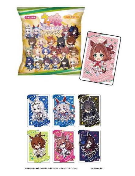 【内容】うすしお味のポテトチップスにウマ娘のカードが1袋につきランダムで1枚付いています。(カード全30種)