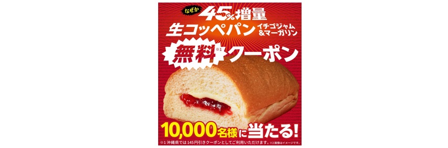 ※沖縄県では生コッペパン(イチゴジャム&マーガリン)の145円引きクーポンとしてご利用いただけます。