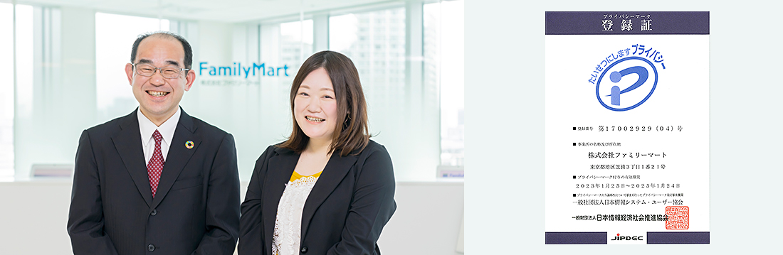 ファミリーマートでは、ステークホルダーの信頼に応えるために、個人情報について適切な措置を講ずる体制を整備している事業者等を評価する「プライバシーマーク」を取得しています。