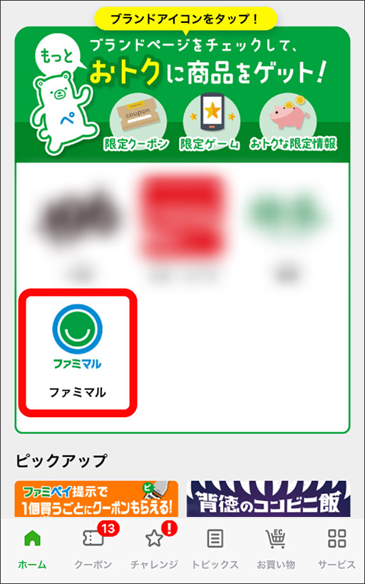 ③ファミペイで実施中のキャンペーンやブランドのお得情報が確認いただけます。