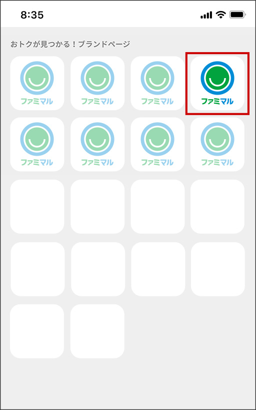 専用ページにはそのブランドのおトクなお知らせやクーポン等を掲載しますので、ぜひファミペイアプリへアクセスしてみてください!