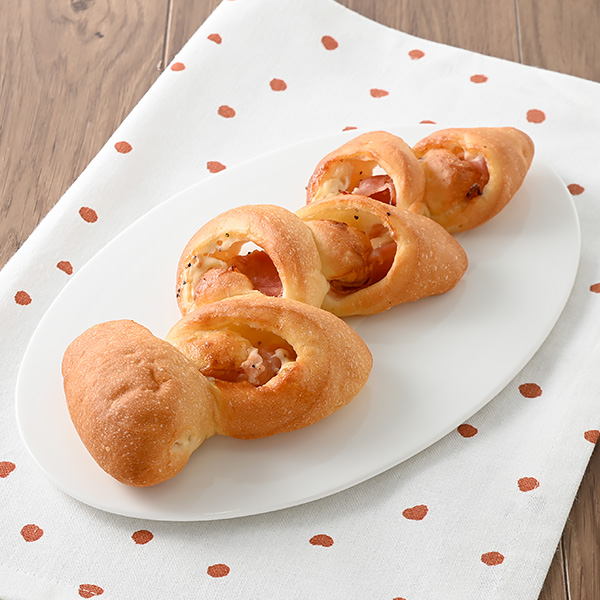 サンリオキャラクターコラボ商品です。マイメロディをイメージしたピンク色のしっとりもちもちとしたコッペパン生地に、いちご果肉入りミルクホイップを挟みました。パッケージにはいちごを持ったマイメロディとお友だちの“フラットくん”をデザインしました。