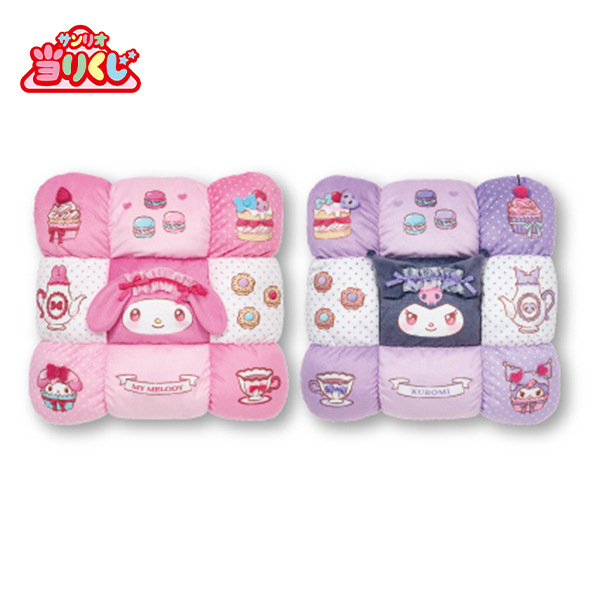 サンリオの人気キャラクター、マイメロディとクロミの当りくじ。「ティーパーティー」をテーマに、ペアで集めたくなるアイテムをラインナップしています。スイーツモチーフのキュートなデザインにも注目です。ラストスペシャル賞には、両面でキャラクターが楽しめる「クッション」をご用意しています。