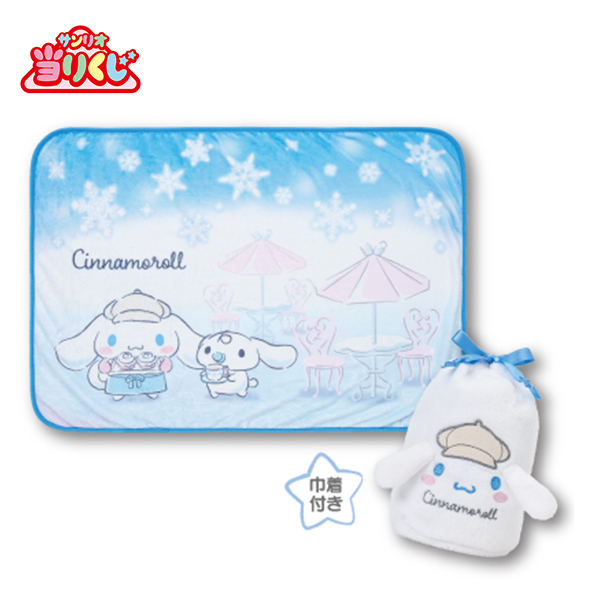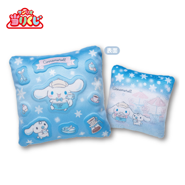 サンリオの大人気キャラクター「シナモロール」の当りくじです。「冬のカフェ」をテーマにしたくじオリジナルデザイン。オーブントースターやガラスボウルなど、豪華で実用的なアイテムをラインナップしています。ラストスペシャル賞は、カフェのマスター姿のシナモンとみるくの、そのまま飾れる巾着付きぬいぐるみセットです。