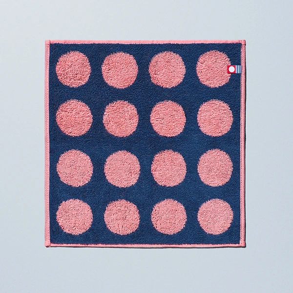 今治タオルハンカチ ドット/コーラルピンク・ネイビー