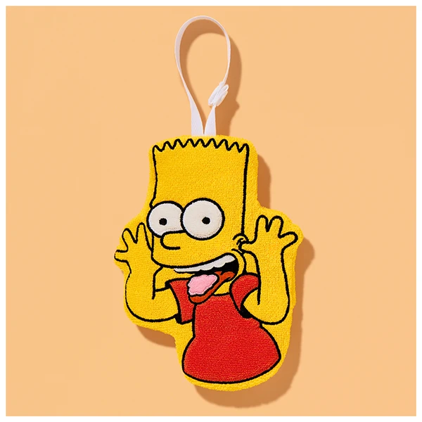 ①ポーチ②タオル③タオル付ポーチの3WAYで使えて、コンパクトに持ち運べる、バートのおなじみのポーズをデザインしたタオルインポーチです。
